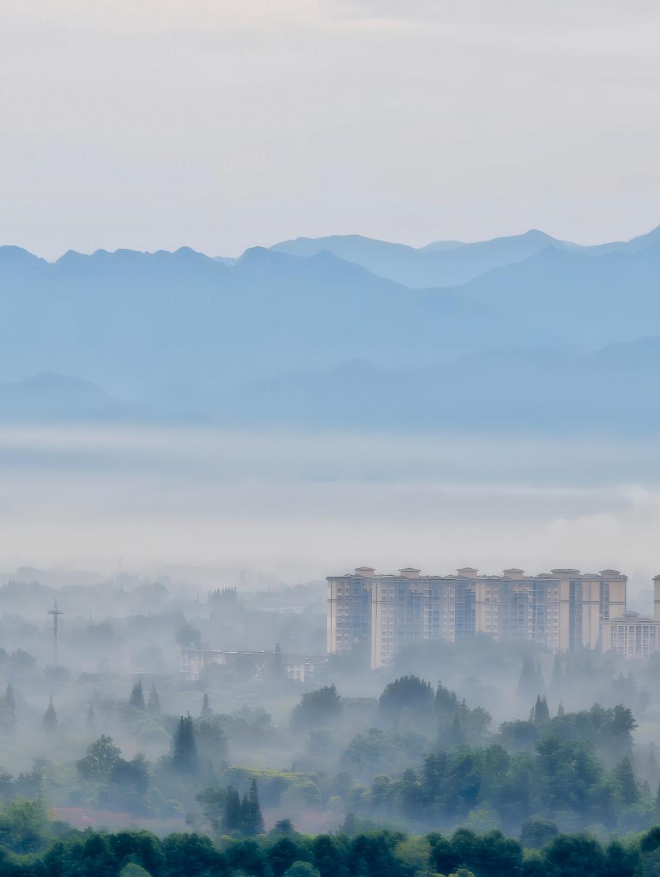 8月11日清晨,5点40分时文增勇便守候在温江国色天乡乐园这处最佳拍摄点位。随着天色渐亮,眼前如诗如画景色更是让他一眼沦陷。“虽然早有心理准备,但是这番美景还是让我震撼不已。”文增勇激动地表示,“远处薄雾缭绕的群山宛如水墨画卷,每一笔都流淌着诗意与静谧。”
