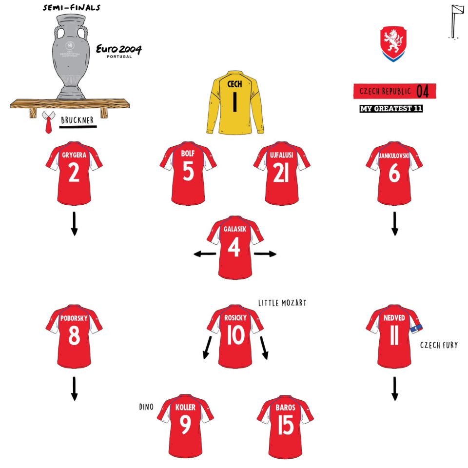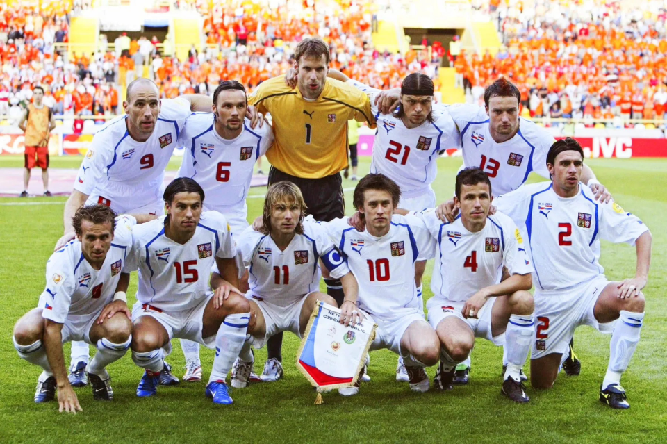 这两届大赛,捷克都是用一种攻守并不平衡的方式来踢的,进攻极其猛烈,同时后防比较空虚,防守全靠切赫,以及中场全靠内德维德填补空白。